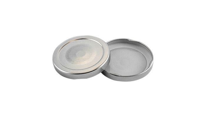 63-2030 mm Lug silver button metal closure with plastisol liner.